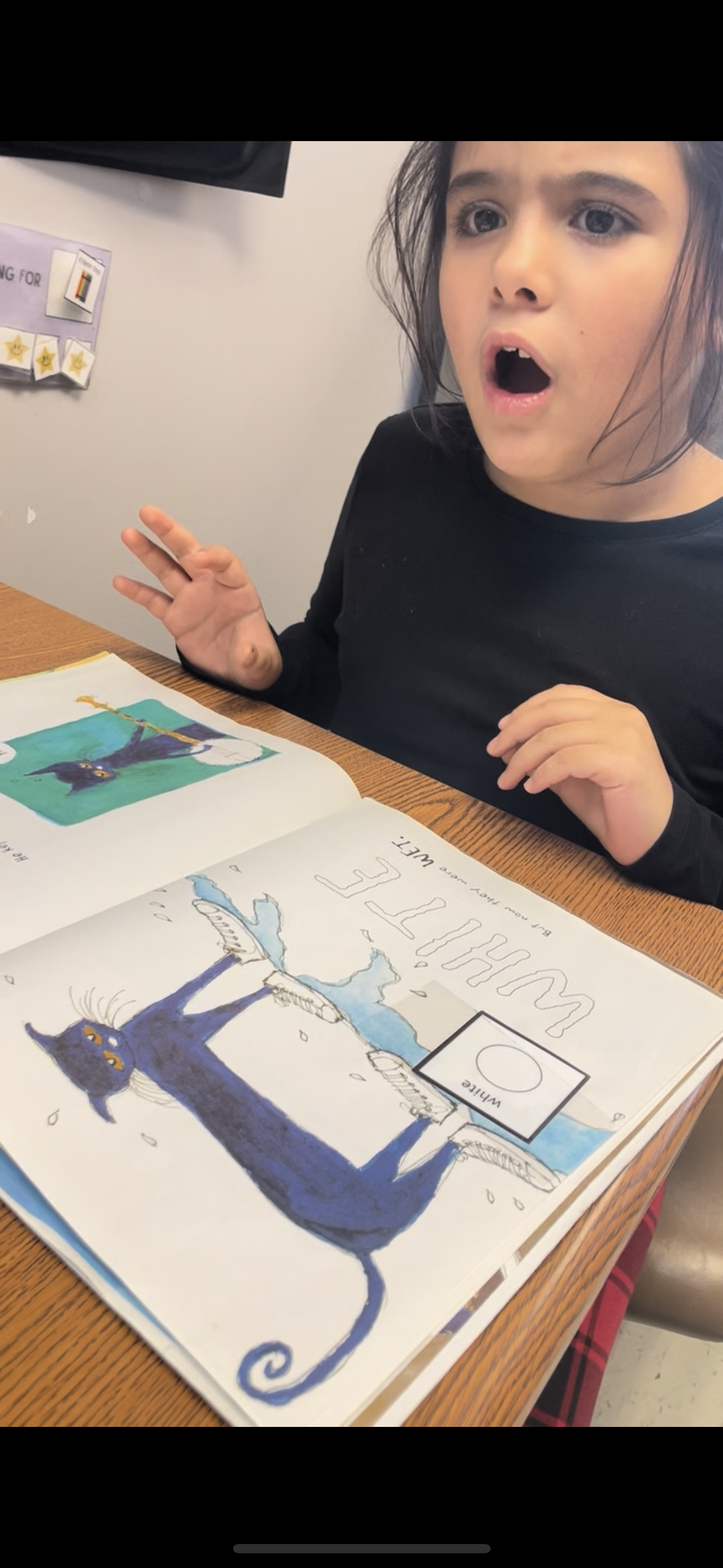 Annual Goal 2: Enisa will respond to factual "What", "Who" and "Where" questions by verbalizing when presented with a short story in 8/10 trials as measured by data collection and teacher/provider observations